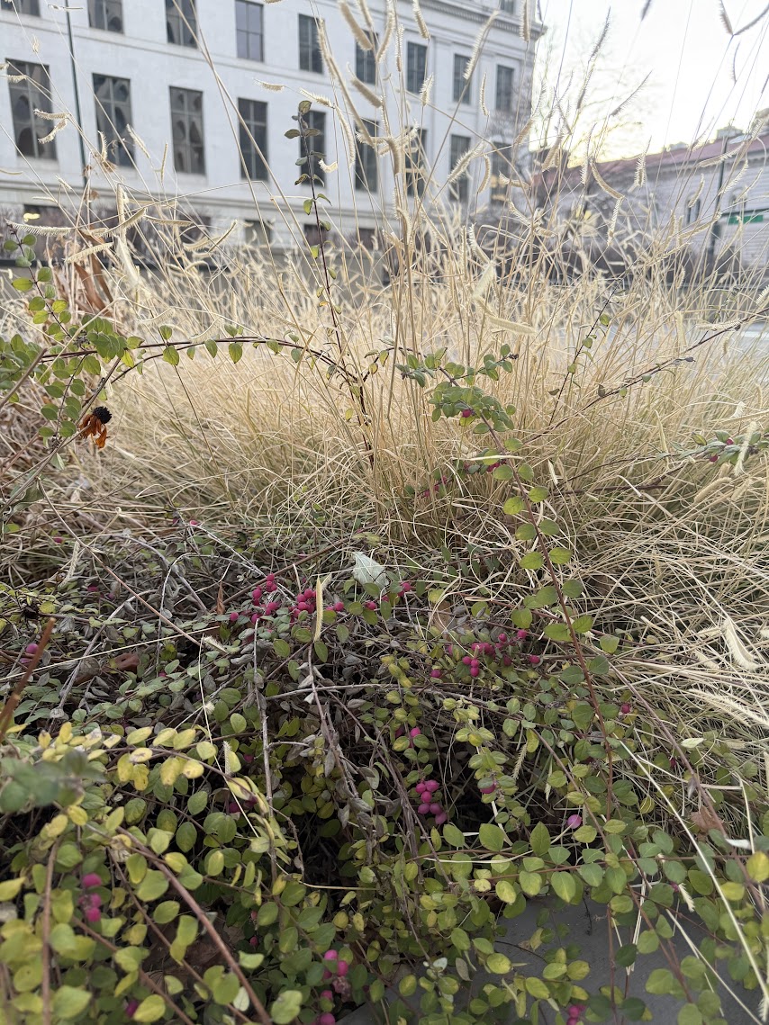 Though winter plants may appear “dormant,” perennial species are actively preparing for spring. Native grasses like blue grama (Bouteloua gracilis) and little bluestem (Schizachyrium scoparium) maintain their upright structure, creating movement and texture even in snow. Seedheads from flowers like coneflowers and black-eyed susans provide winter habitat for birds, while hollow stems shelter pollinators and insects.