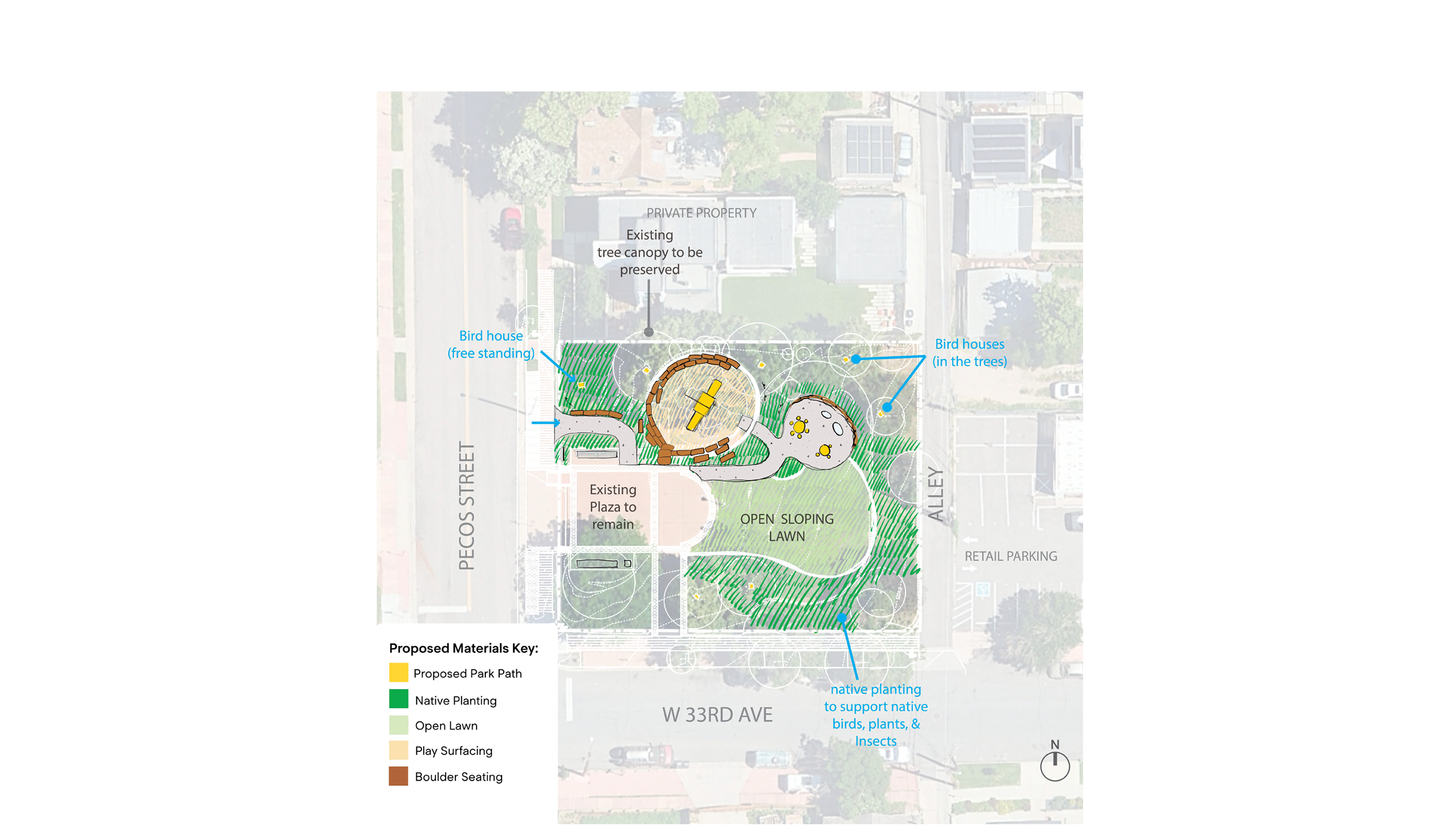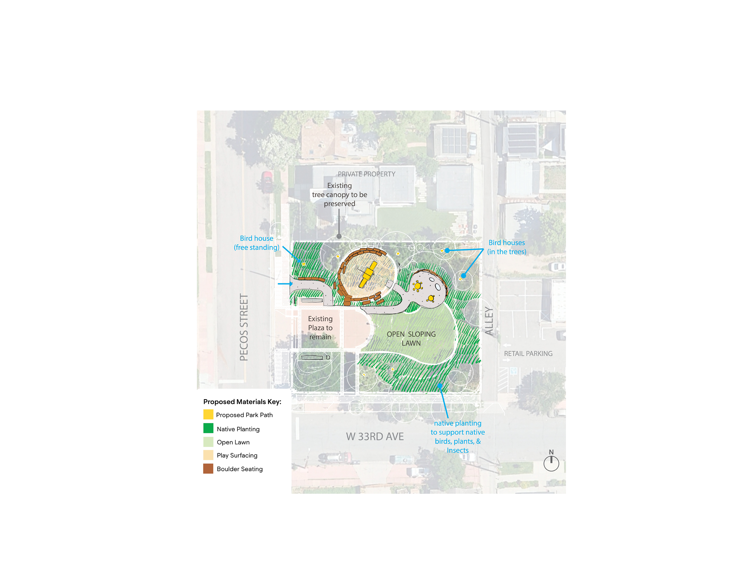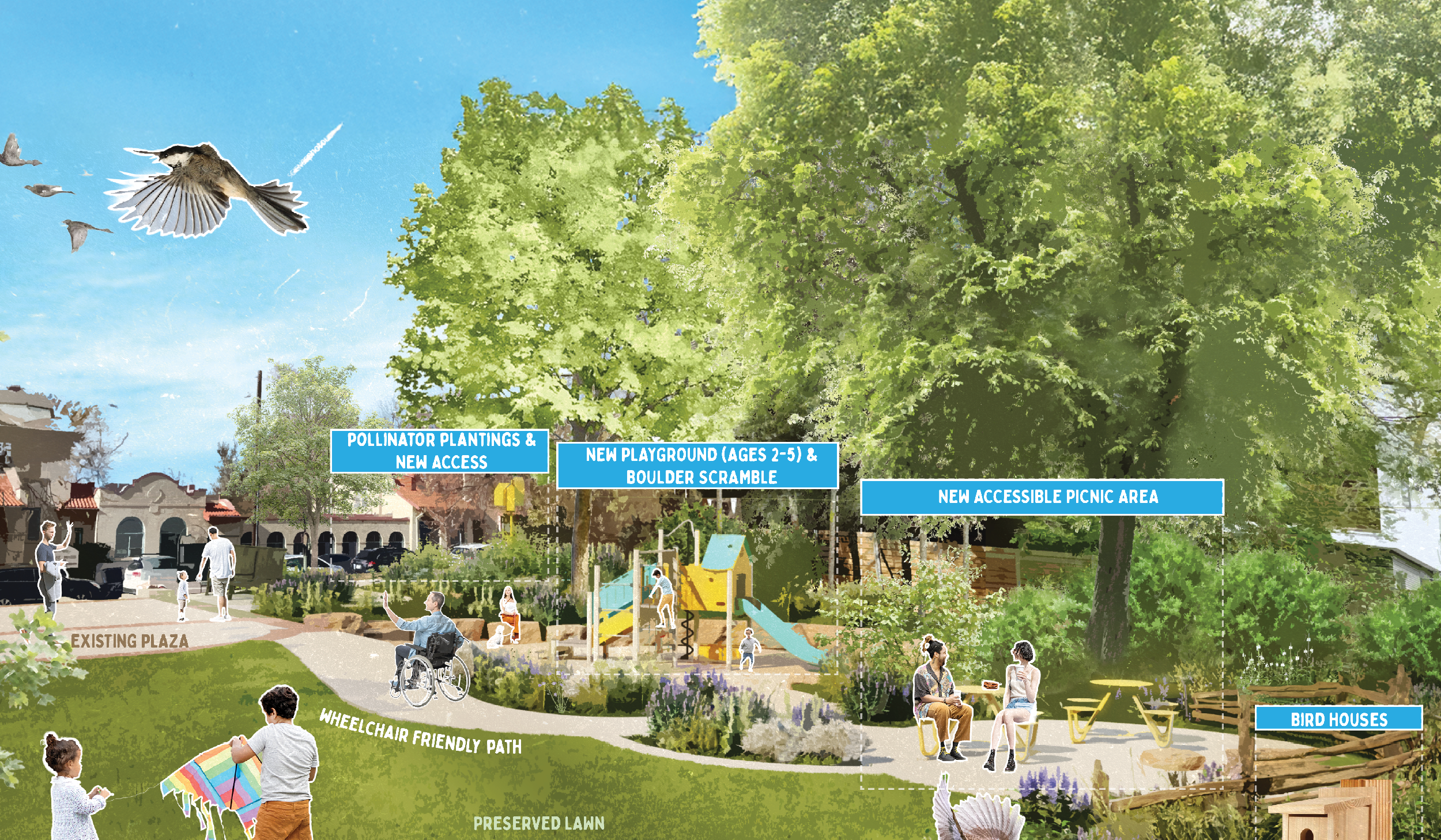Superbloom is working with the Denver Parks and Recreation Department to lead a community engagement and design process to reimagine St. Patrick’s Park & Playground in the Highlands neighborhood of Denver.